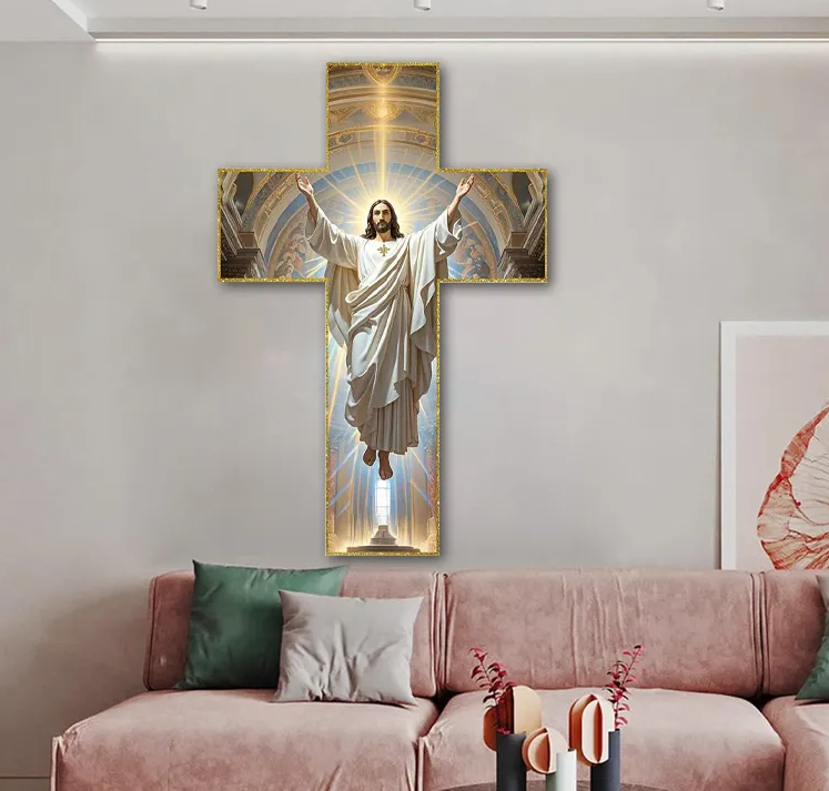 Realizată din acril premium cu reflexii aurii, această cruce devine un simbol al luminii lui Hristos care veghează asupra casei tale.